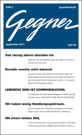 Michael Peschke starb 52jährig am 14. Mai 2011, als der vorliegende Gegner druckfertig war. Es fehlten nur letzte Korrekturen. Es sollte ein Juni-Heft werden. Durch den plötzlichen, unerwarteten Tod des Freundes und Redakteurs Michael Peschke erscheint es erst jetzt – erweitert um sein letztes Film-Exposé Kalaschnikow. ...