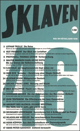 Abbildungen: Christian Nicolas, Eyal Weizman, S. 2-47; Holger Fickelscherer, S. 2, 14, 33/34, 36, 38, 46; Kupferstichkabinell Dresden, S. 7; Harald Hauswald, S. 18, 20, 23; Archiv Walter Markov, S. 10; Bildsprecher Deutsch für Soldaten. Grundausbildung, hrsg. von W. Bode, Berlin 1944, S. 24/25; Arbeiter-Illustrierte-Zeitung, Jg. 1929, S. 26; Archiv Sklaven, S. 28, 47; Fotovisionsapparat 1, Bahnhof-Zoo, 22. 5. 1998, S. 39; Alistair Noon, S. 48.