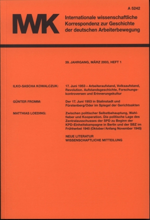 Thomas Klein, "Für die Einheit und Reinheit der Partei". Die innerparteilichen Kontrollorgane der SED in der Ära Ulbricht, Köln, Weimar und Wien 2002 (Bernd Florath) (S. 104)