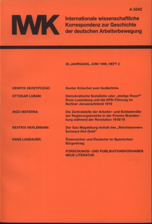Sabine Roß, Politische Partizipation und nationaler Raeteparlamentarismus. Determinanten des politischen Handelns der Delegierten zu den Rätekongressen 1918/1919. Eine Kollektivbiographie, Köln 1999 (Ingo Materna) (S. 292)