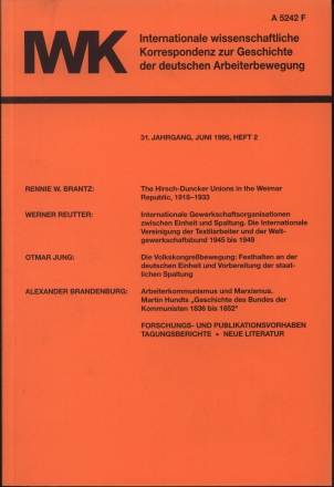 Alexander Brandenburg: Arbeiterkommunismus und Marxismus. Martin Hundts „Geschichte des Bundes der Kommunisten 1836 bis 1852“ (S. 215)