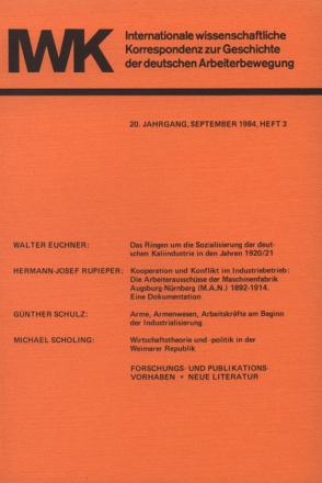 Hermann-Josef Rupieper: Kooperation und Konflikt im Industriebetrieb: Die Arbeiterausschüsse der Maschinenfabrik Augsburg-Nürnberg (M.A.N.) 1982-1914. Eine Dokumentation (S. 347)